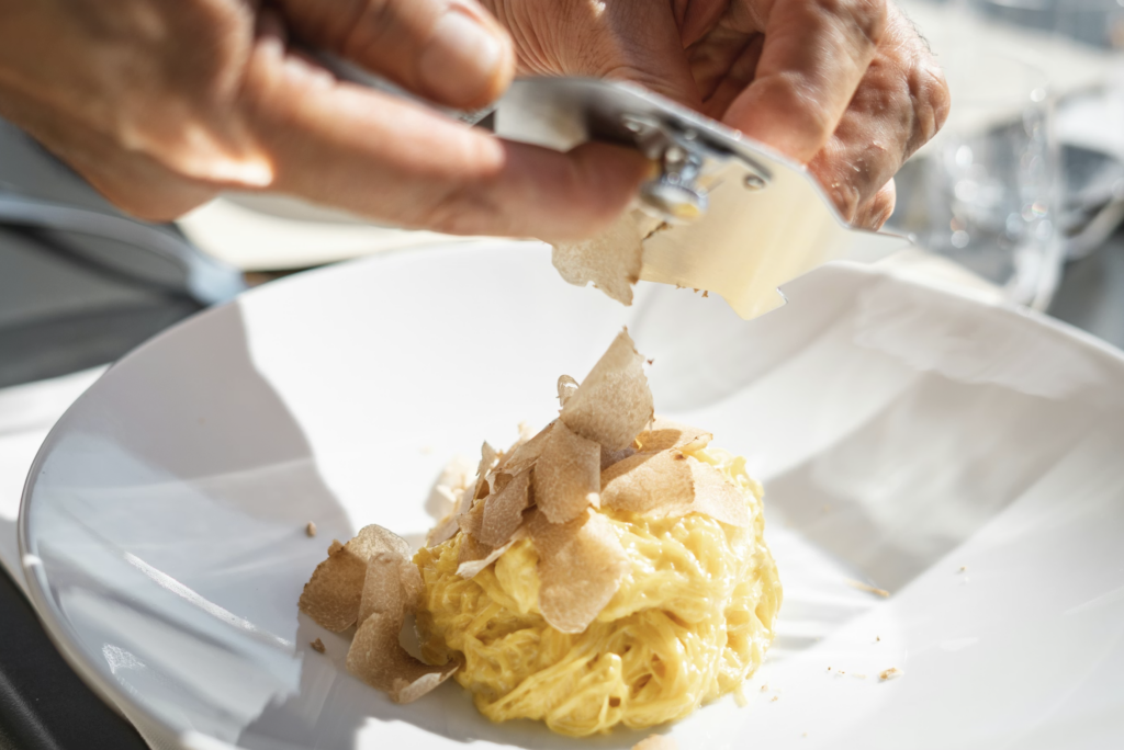• Tajarin, impossibly fine egg pasta, often finished simply with butter and shaved truffle